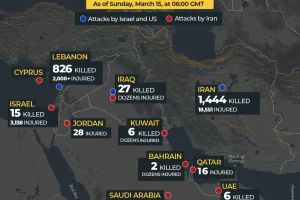 The war between Iran, the United States, and Israel has entered its sixteenth day with new deadly airstrikes, retaliatory missile launches, and growing fear across the Gulf region. According to Al Jazeera, early Sunday attacks on Iran’s city of Isfahan killed at least 15 people, while fresh missile sirens sounded across Israel as Tehran continued…